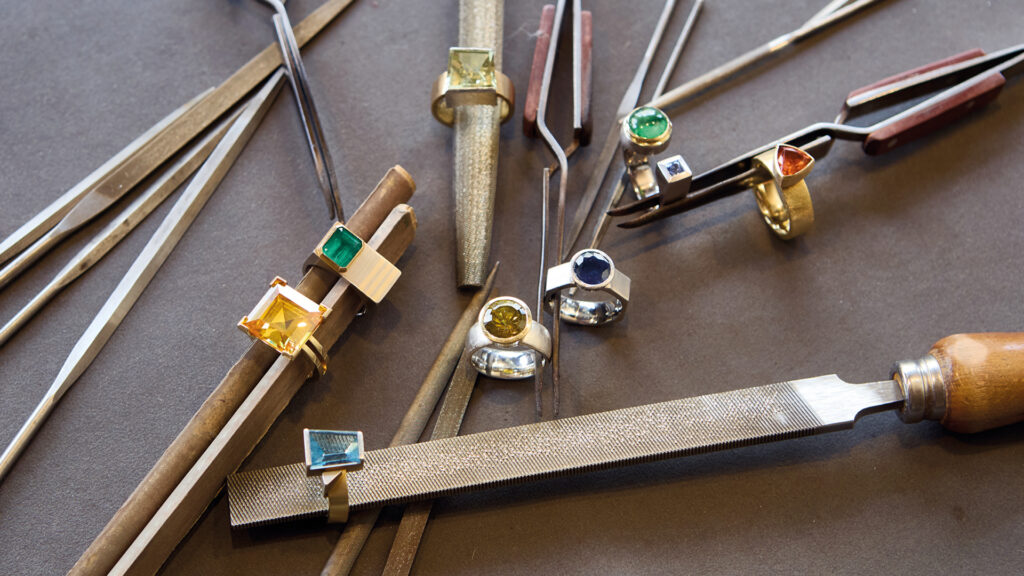 Weniger ist mehr ist das Motto, das die Goldschmiedemeisterinnen Tina Theves und Laura Mennigen für ihre Kollektion zum Sommer 2024 gewählt haben. Dahinter steckt der Gedanke von einzelnen Schmuckstücken als Statement – also fort vom Trend des Zarten und Unauffälligen – hin zum effektvollen Auftritt mit einem Hingucker.